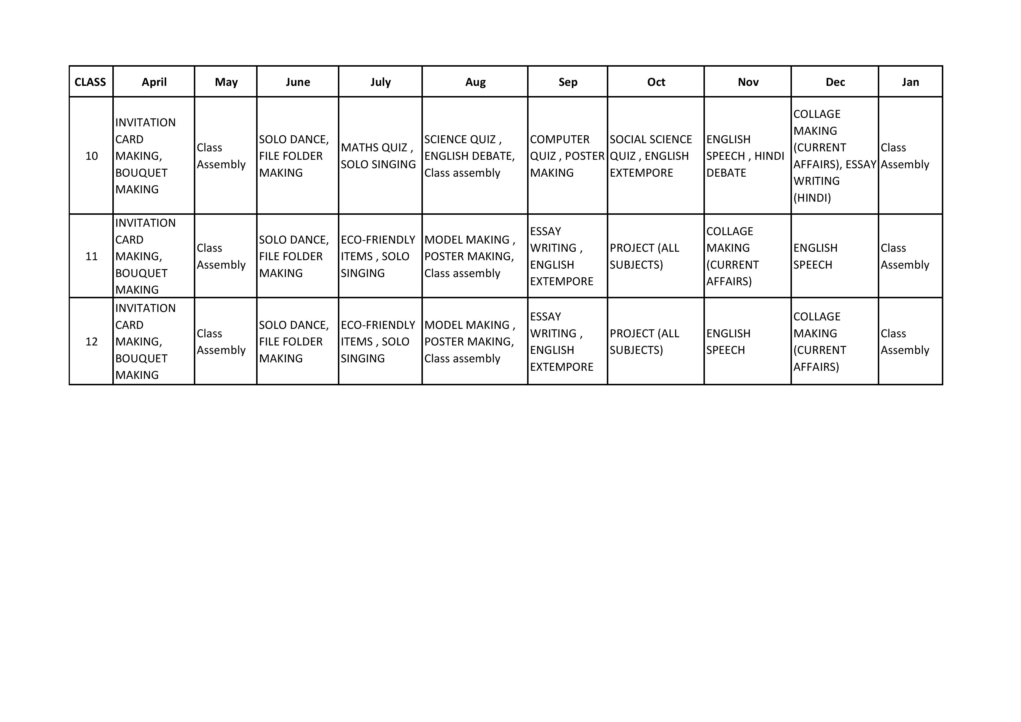 Home Class Activities